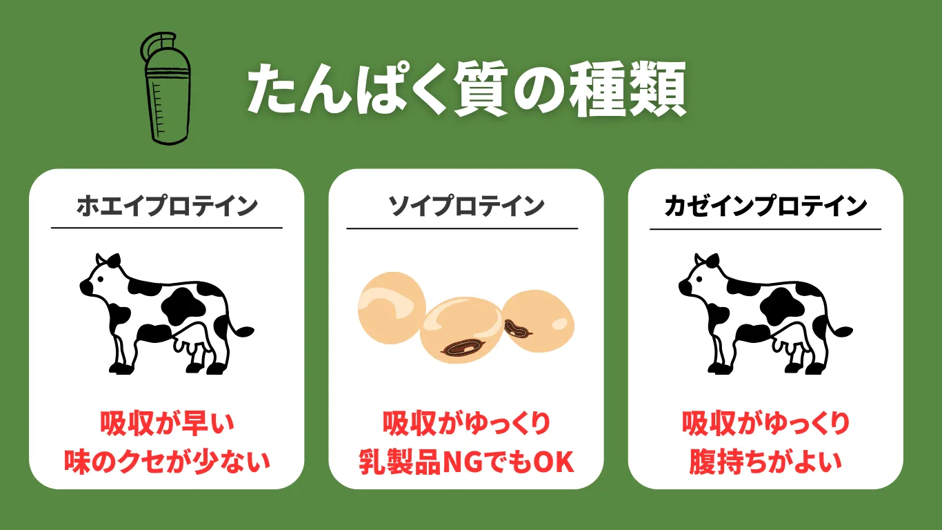 抹茶プロテインを選ぶ際、まず確認したいのがたんぱく質の種類です。