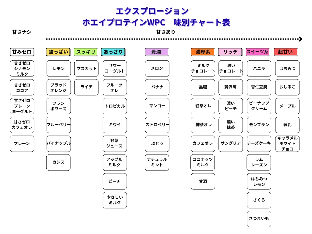 この記事では、エクスプロージョンホエイプロテインWPCの中でも特に人気のフレーバーをランキング形式で紹介しつつ、選び方や口コミもあわせて解説します。